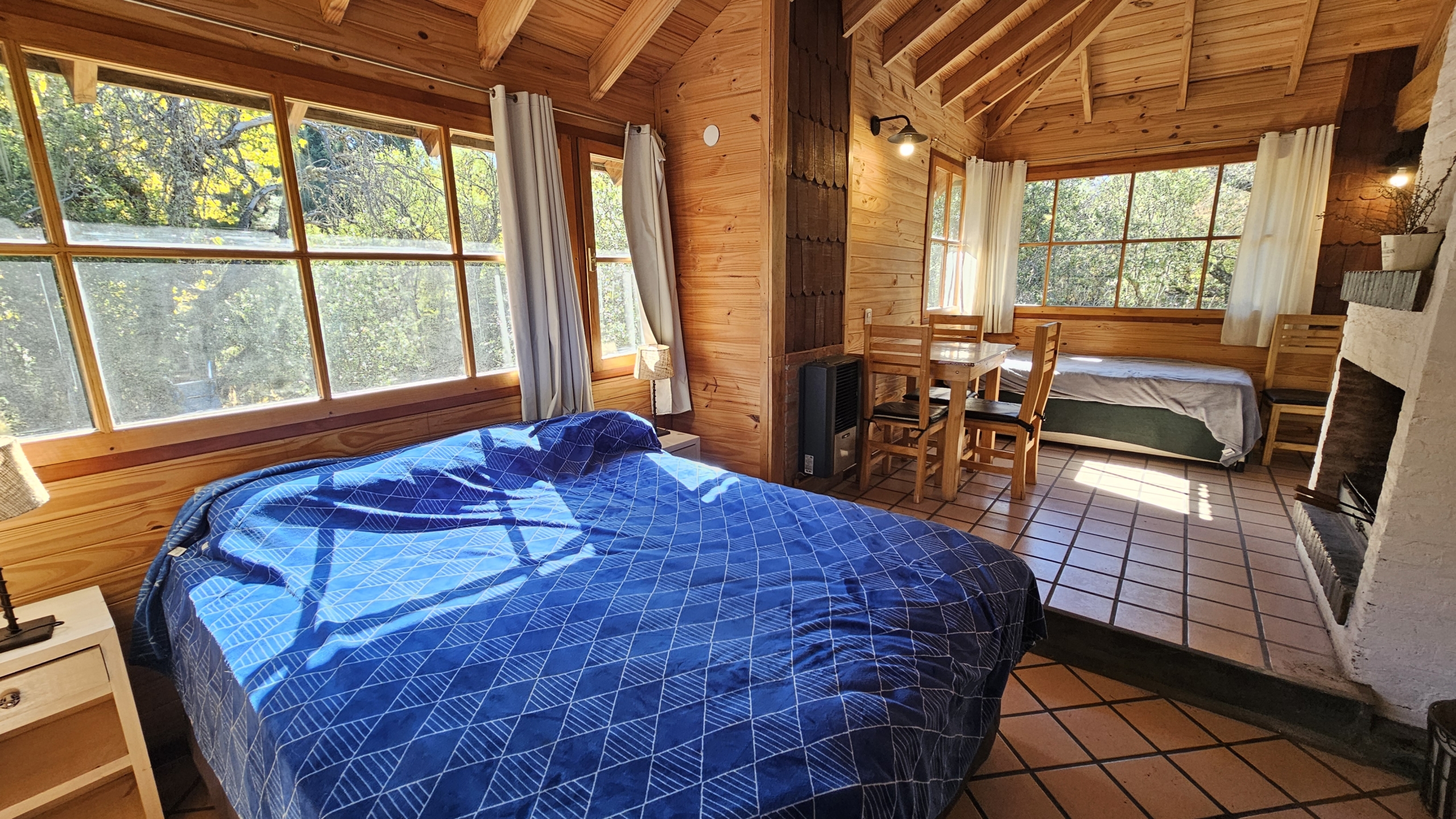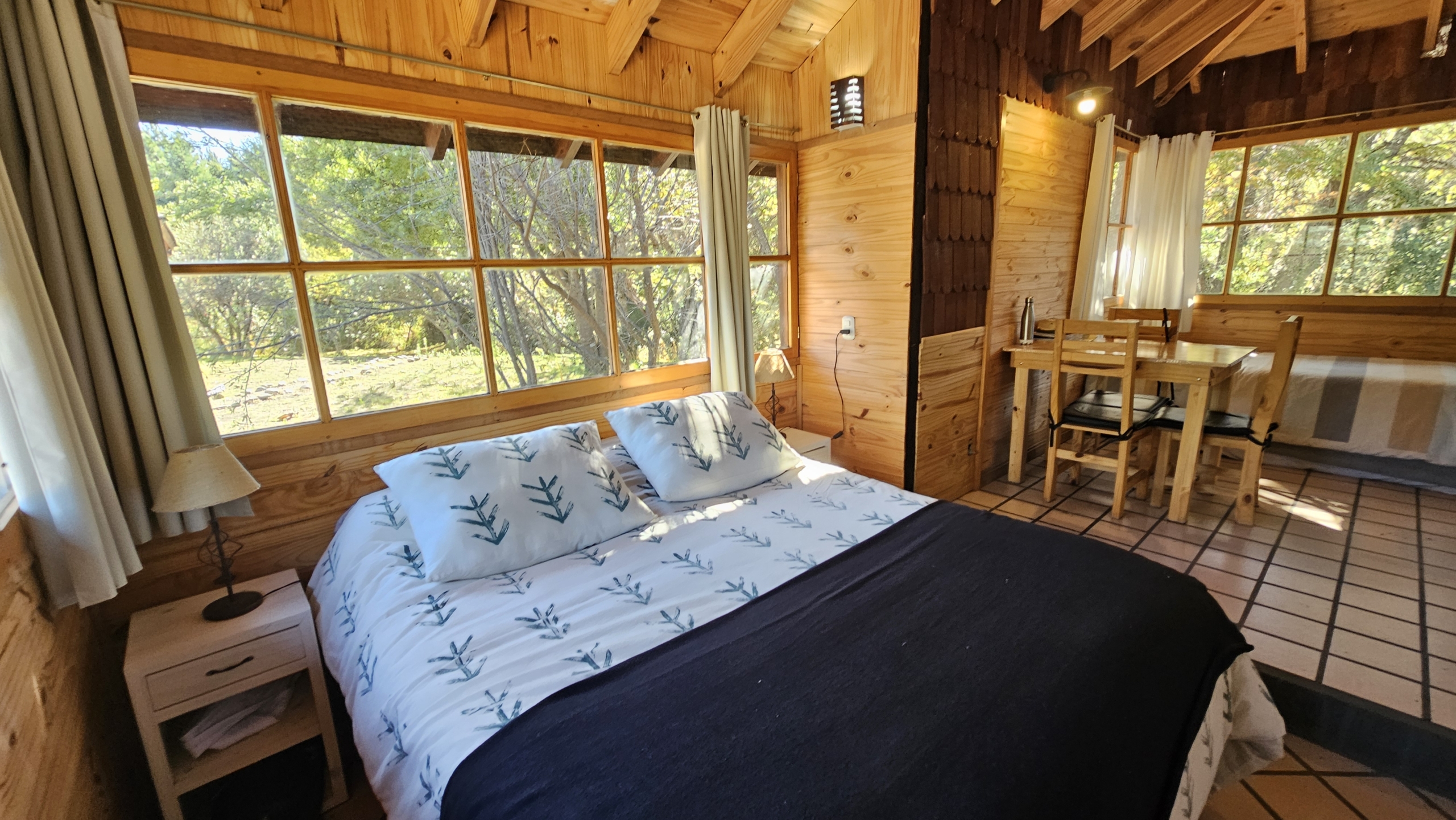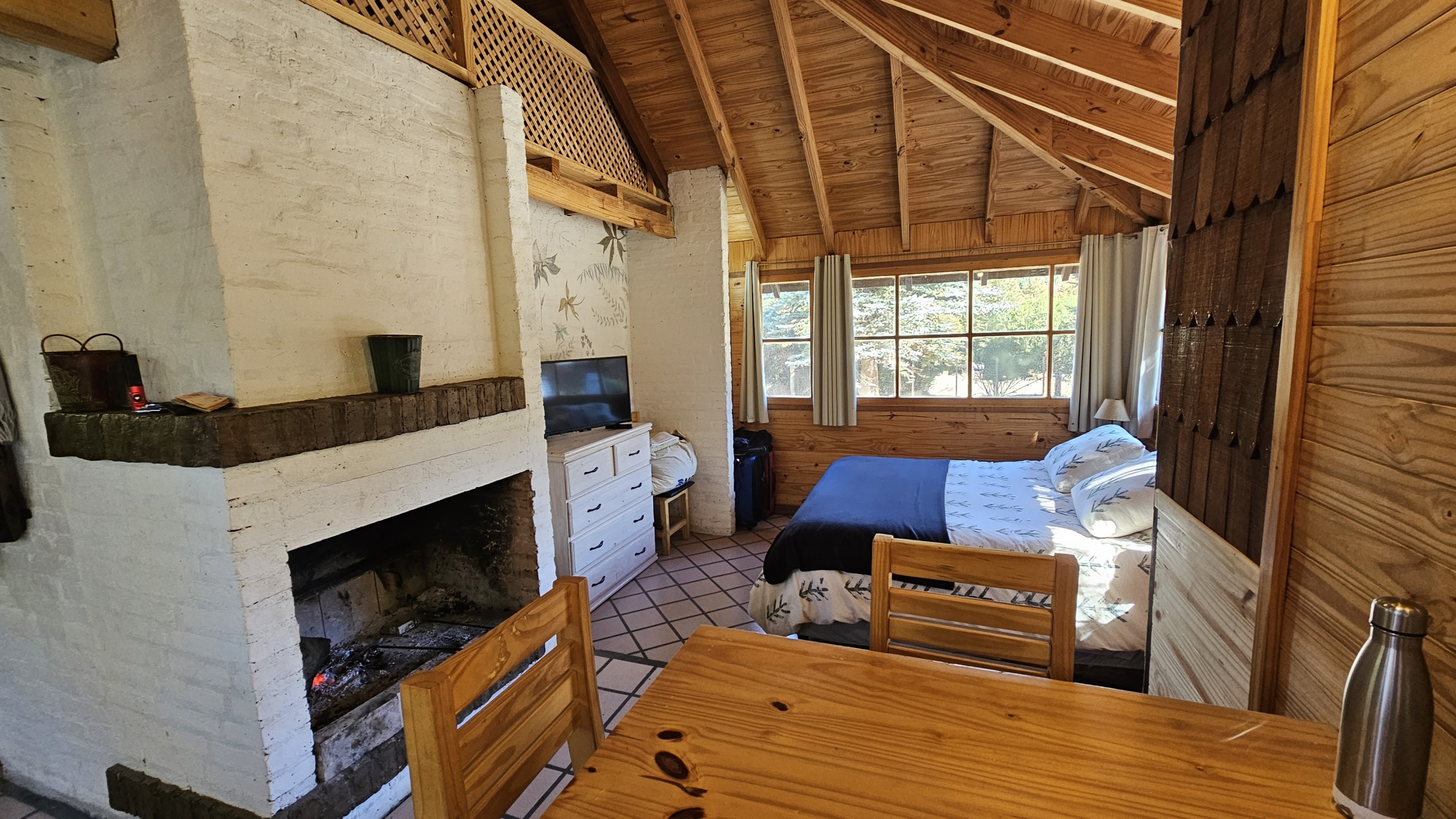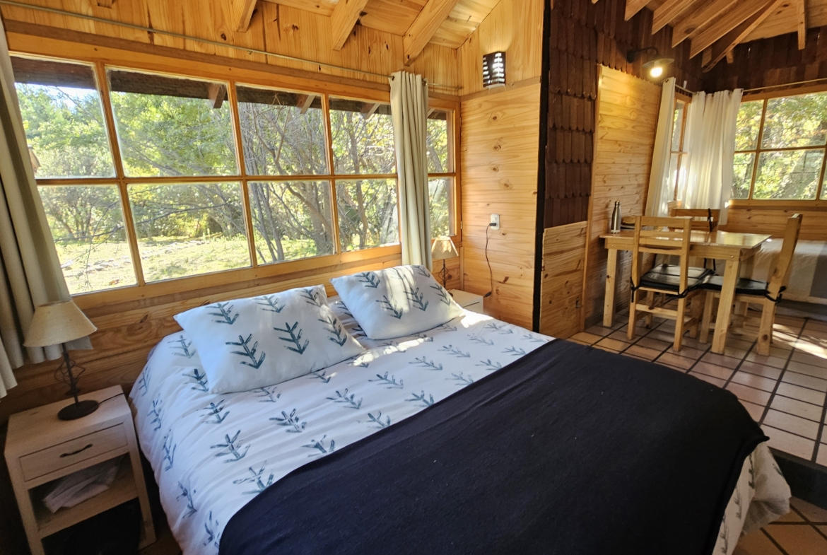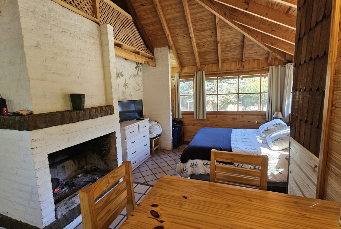 las cabañas cuentan con hogar a leña, baño completo, cocina equipada, sector comedor living y dormitorio en concepto abierto tipo loft.